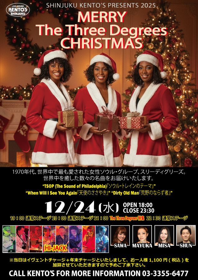 | 12(水) | ★EARTH,WIND & FIRE 特集★HI-JACK アイバン&シュン&ユージン&マユカ&ミサ Extra Charge¥1,100 |