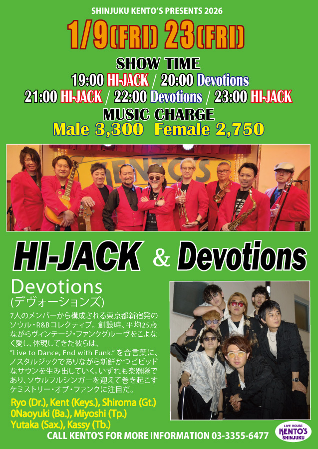 | 9(金) | HI-JACK サワ&マイコ&アイバン&Devotions |